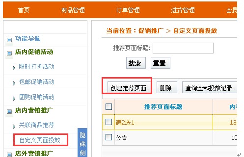 4、 创建自定义推荐页面:在自定义页面中点击“创建推荐页面”