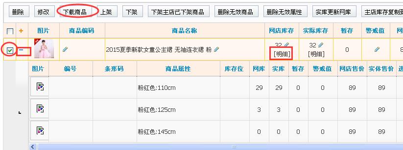 2)有管理库存的,在参数设好后,可以点“明细”查看该商品的库存变化情况。