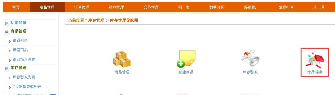路径:商品管理》赠品管理