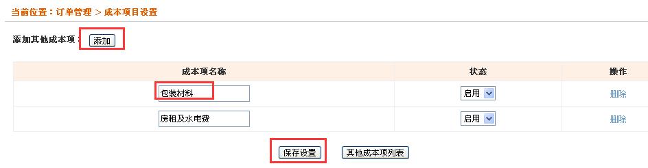 说明:1)只能选一个运费模板为当前有效的运费模板; 2)如果只调整包邮订单,订单类型请选“包邮订单”,同一买家多笔订单的只调整金额最大订单的运费。 3)如果有运费,但运费不真实,订单类型请选“包邮+含运费金额的订单“。 4)每隔一小时执行一次检测订单并按运费模板套运费,不是实时的哦。 5)未付款的订单不自动套运费哦 十六、其它成本 路径:订单管理》其它成本